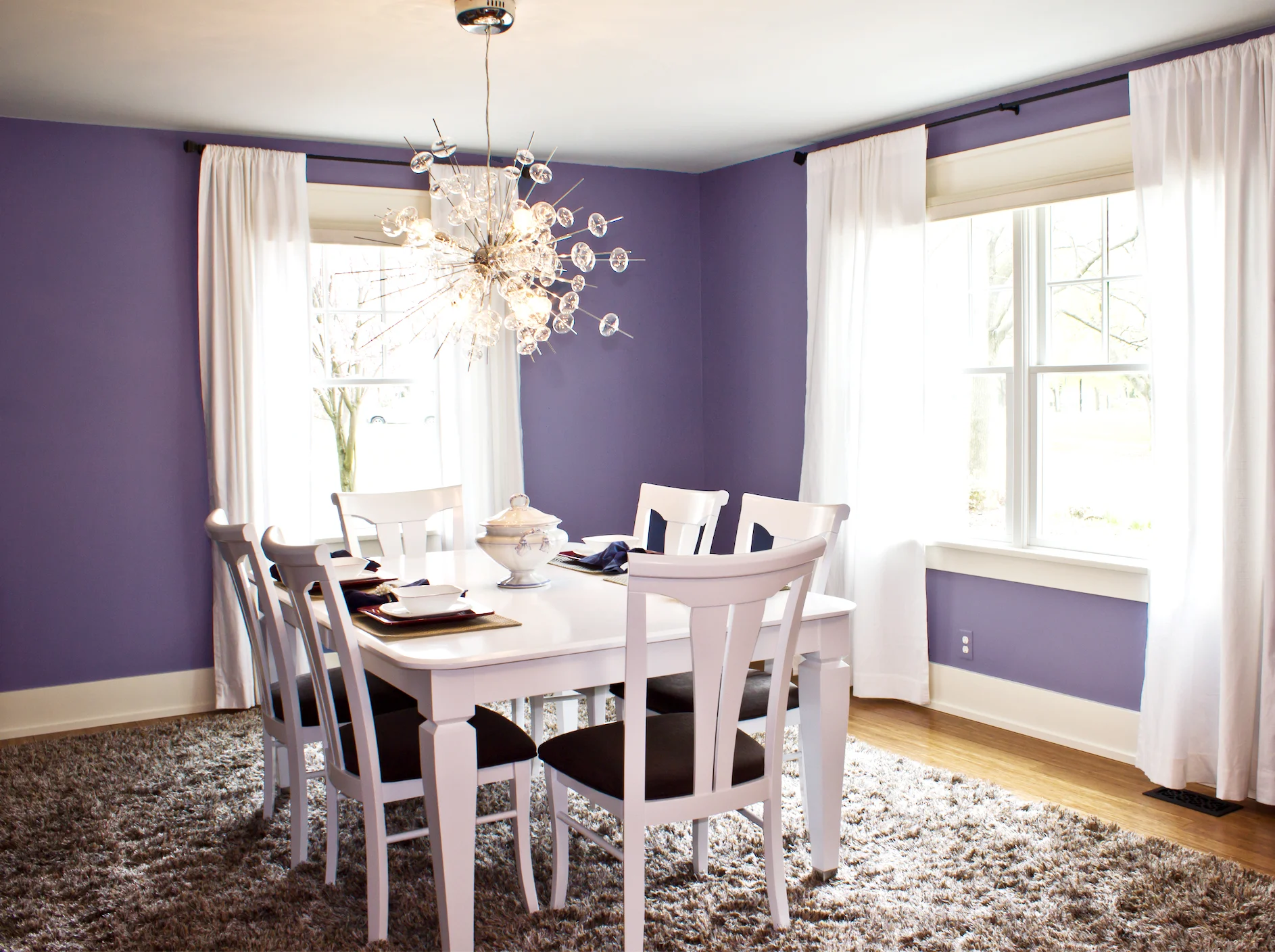 Goodness gracious - purple walls? I can't do that! That's pretty much what my client told me when I suggested it. Even after the walls were painted and the room was sitting empty, she still had her doubts. However, by balancing it with ample shades of neutral grays, the space feels rich and regal - and she now loves it!